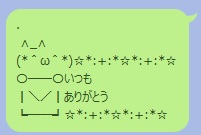 先ほどのサイト紹介で説明したこのありがとうAAも、最初コピペしたときは頭が小さくなっていました。このように表示がずれてしまう場合は、文字と文字の間にスペースを加えたりすることである程度対処することが可能です。