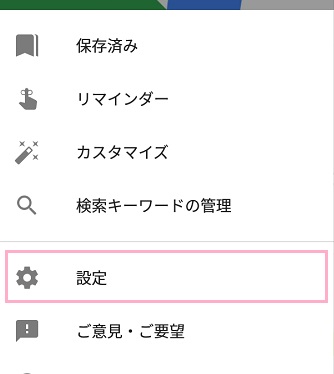 次にGoogleアプリを起動して、左上にあるメニューボタンをタップします。表示されたメニューの「設定」をタップしましょう。