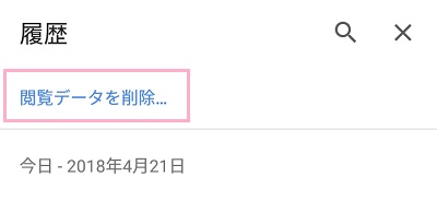 履歴メニューが表示されたら「閲覧データを削除」をタップします。