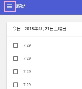 履歴メニューが表示されたら、左上のメニューボタンをクリックします。