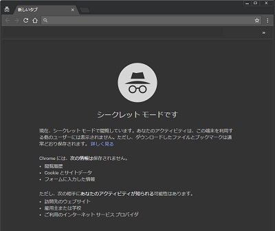 通常のブラウザとは別に、暗い色のシークレットモードウィンドウが表示されます。このウィンドウでは検索履歴が残らないので、安心して検索することが可能となっています。