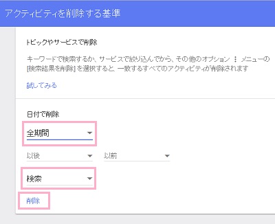 googleの検索履歴を消す方法