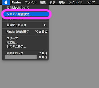 まずは、メニューバーのApple(リンゴマーク)をクリックし、「システム環境設定」を選択します。