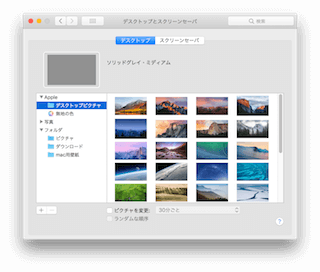 Mac OS Xでは、デスクトップの背景の画像のことを、デスクトップピクチャまたは、Wallpaperと呼びます。