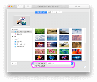 Macの標準機能に、定期的にデスクトップの壁紙を変更する機能があるんです。