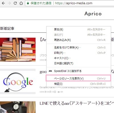 PC版Chromeでは、ソースコードを表示させたいサイト上で右クリックしてメニューを表示させ、「ページのソースを表示」をクリックすることでソースコードを表示させることが可能です。