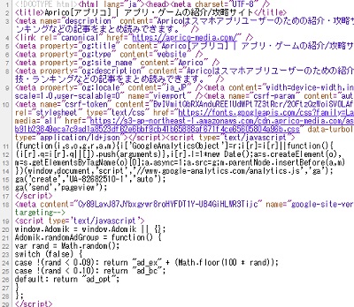 新しいタブが開き、サイトのソースコードが表示されます。