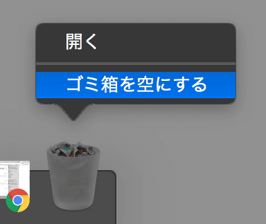 ゴミ箱を右クリックして、「ゴミ箱を空にする」を選択しましょう。