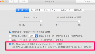 ここのチェックを付けることで、fnキーを押さなくても標準的なファンクションキーが有効になります。