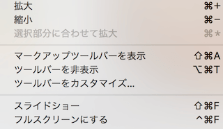 メニューの[表示]を開くとスライドショーのメニューが出てきます。