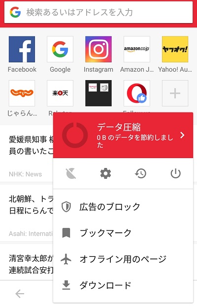 スマホ版のOperaは通常版とこの「Mini」が存在しており、Miniは通常版と比べて細かいカスタマイズができないものの軽いブラウザとなっています。