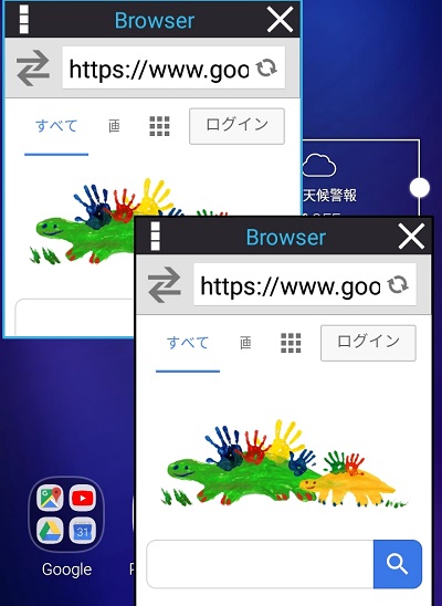画像のように、ホーム画面にブラウザを複数表示させることが可能です。