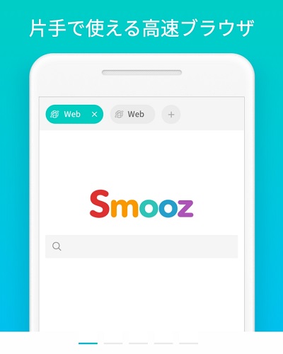 「Smooz」は、アスツール株式会社が提供する国産のブラウザです。「片手で使える高速ブラウザ」を謳っており、どんどん本体サイズが大きくなっており、両手で扱うのが当然になってきているスマホを片手でブラウジングしやすく開発されているのが特徴です。