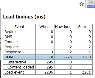 Fastrがオフの時はページのリロードに2.29秒かかっています。
