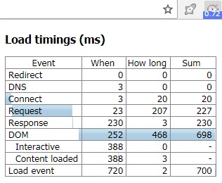Fastrがオンの時のページのリロード時間はなんと0.72秒と、約1.5秒も速くすることができています。
