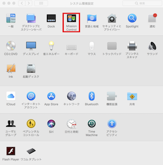 Dockにあるシステム環境設定から「Mission Control」をクリックします。