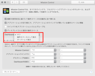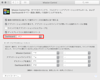 「Dashboard」の「オフ」と表示されているメニュー欄をクリックします。