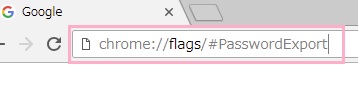 アドレスバーに「chrome://flags/#PasswordExport」と入力して移動しましょう。