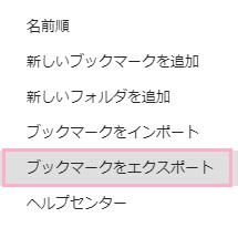メニューが表示されたら、「ブックマークをエクスポート」をクリックしましょう。