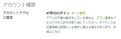 「アカウント履歴」項目から、アカウントのアクセス履歴を確認できます。