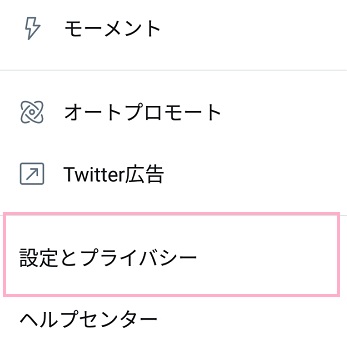 Twitterアプリを起動したら、左上に表示されているアカウントアイコンをタップしてメニューを表示します。メニュー下部にある「設定とプライバシー」をタップしましょう。