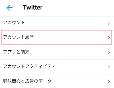 「アカウント履歴」をタップします。