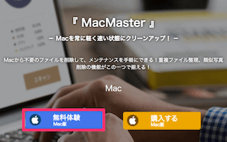 下記のリンクからFonePaw MacMasterの製品ページに行きましょう。すると「無料体験」「購入する」というボタンが表示されます。