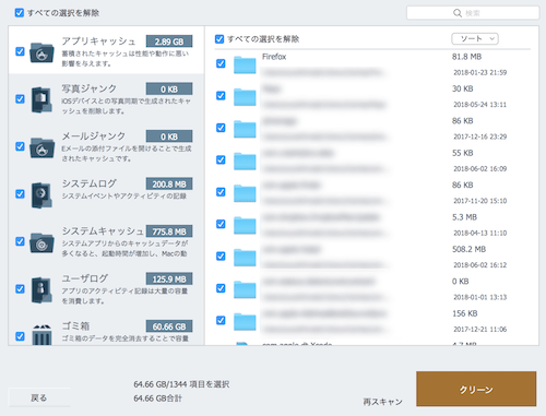 操作が簡単なため、このようなMacをクリーンアップするソフトで使ってないファイルを整理するのが初めてという方にもおすすめです。