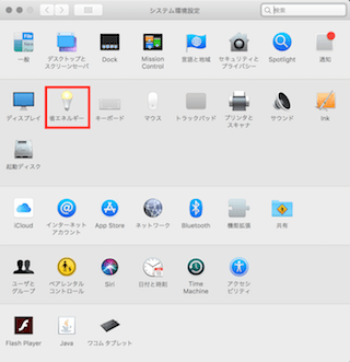 Dockにある「システム環境設定」から省エネルギーを選択します。