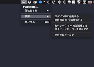 起動させるとメニューバーにアイコンが表示されます。
