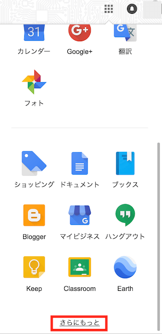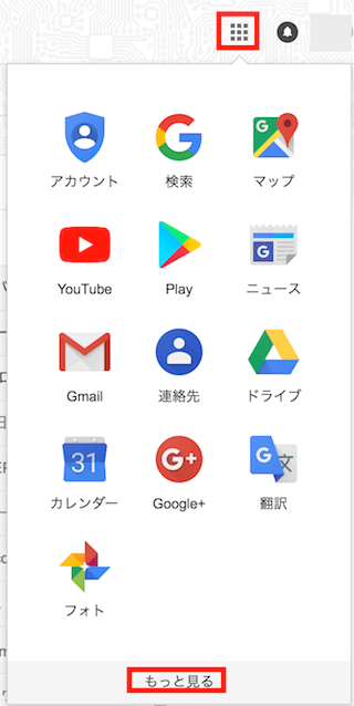 Googleのサービス一覧が表示されます。