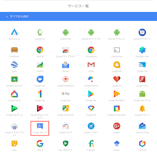 サービス一覧のなかに「Google グループ」がありますので、クリックします。