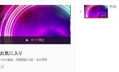Youtubeのお気に入りリストに動画を登録しておいた場合、見ることは可能なのか確認してみました。画像は動画を削除する前のお気に入りリストの状態です。