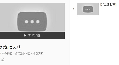 こちらが動画削除後のお気に入りリストの状態です。登録していた動画が[非公開動画]となっており、サムネイルも違うものになってしまいましたね。