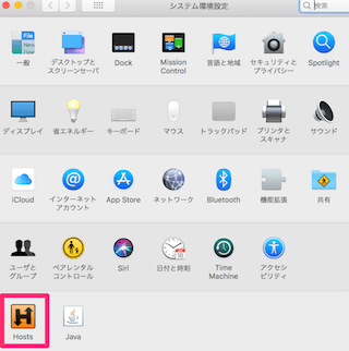 インストールが完了すると、システム環境設定にHostsというアイコンが増えるかと思います。