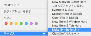 Make Symbolic Linkをクリックすることで、アプリを使ってシンボリックリンクが簡単にFinderから作成することができます。