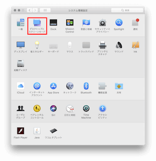 Dockにある「システム環境設定」から「デスクトップとスクリーンセーバ」を選択します。