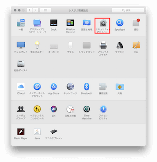 Dockの「システム環境環境」から「セキュリティとプライバシー」を選択します。