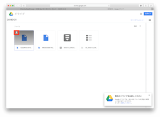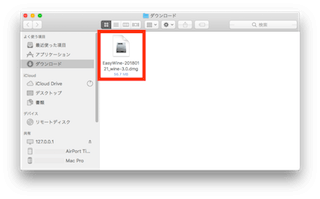 左端の「EasyWine-2018...」というファイルの左上部分をクリックするとdmgファイルがダウンロードされます。