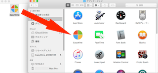 EasyWineをアプリケーションフォルダへドラッグ&ドロップします。