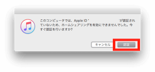 ほかのMacでストリーミング再生する場合は、ホームシェアリングオンにしたiTunesと同じApple IDでサインインします。