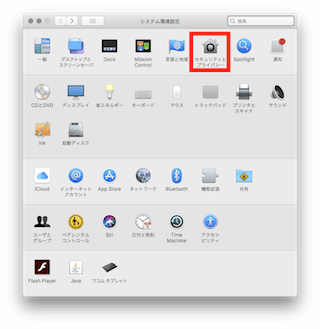 Macの場合はDockにある「システム環境設定」>セキュリテイとプライバシー」を選択します。