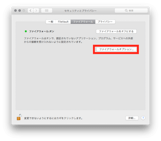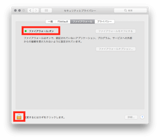 「ファイアウォール」パネルを選択します。ファイアウォールをオンにしている場合、左下の南京錠をクリックします。