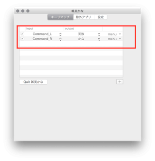 画面のように「Command_L」が「英数」、「Command_R」が「かな」なっているかを確認します。