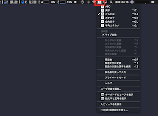 入力の切り替えがうまくできない場合はメニューバーにある入力モードの確認を行ってください。