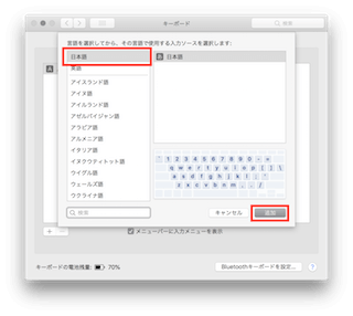 USキーボードの初期設定の場合や何らかの不具合で日本語のメニューが表示されない場合は以下の要領で日本語入力を追加してください。