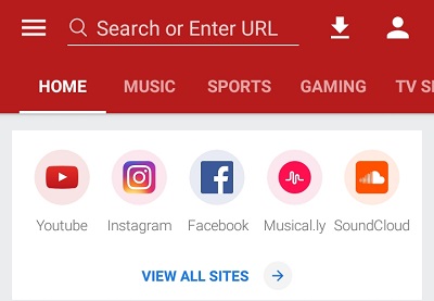 TubeMateと同じく人気の動画ダウンローダーが「Videoder」です。ブラウザ形式なのはTubeMateと同じですが、動画サイトへのリンクアイコンがトップに表示されており検索しやくなっています。