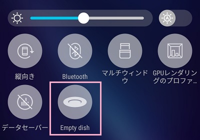 クイック設定メニューに「Empty dish」という空の皿のアイコンが表示されるので、タップします。