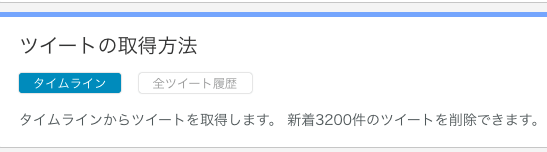 ・黒歴史クリーナーの削除対象が「タイムライン」になっていないか? →「タイムライン」が指定されている場合はMAX3,200件のツイートが対象となり、「全ツイート履歴」が選択されていると全てのツイートが対象になります。一度確認してみましょう。