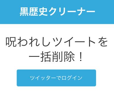ばれたくない人にアカウントがばれ、はずかしいツイートを全部消したい・・・ ・私の黒歴史を消し去りたい・・ ・心境の変化でツイートを全部消してやり直したい! といった場合に黒歴史クリーナーを使うと便利です!